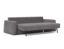 The Cone design is softly rounded and minimalistic. The primary goal of the Cone design has been to combine high comfort, simple sofa to bed conversion and storage. Storage is a main part of the challenge of living in limited square feet, and Cone is conveniently equipped with a large bedding box, designed to help solve exactly this challenge. Cone features legs that automatically fold out when converted into a bed, ensuring a durable, convenient and fast transformation from sofa to occasional bed for every day use. The Cone sofa converts smoothly into a queen-size bed with a long lasting innerspring comfort. If you only require a resting space for a single, simply remove the cushions and a single bed is ready in seconds.